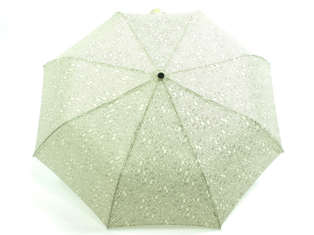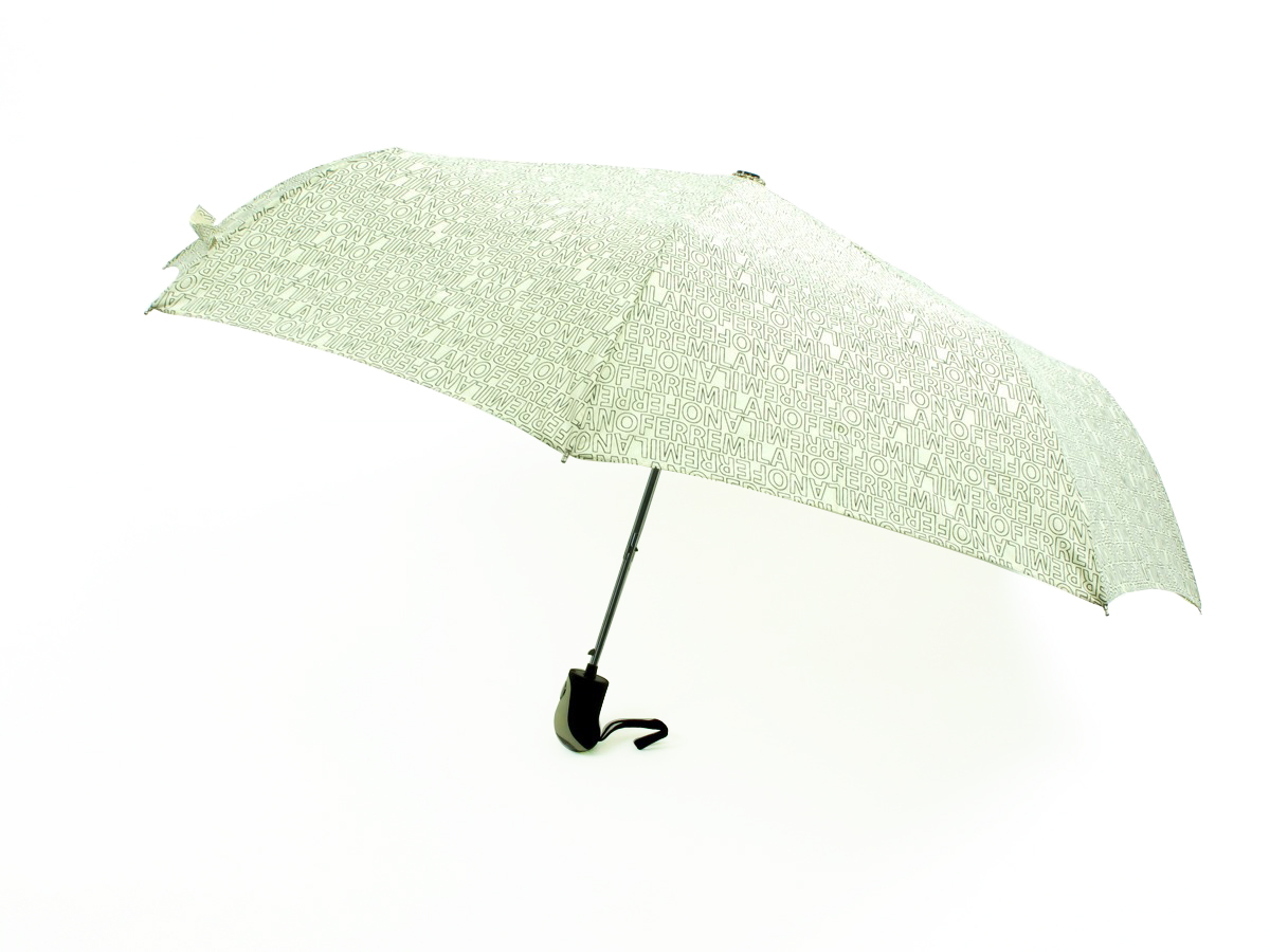 FERRE MILANO Woman UmbrellaCategory: AccessoriesColor(s): Milk - BlackComposition: 100 % Polyester - MetalBrand logo printed pattern Automatic openingPackaging: small pouchSize: 27cm