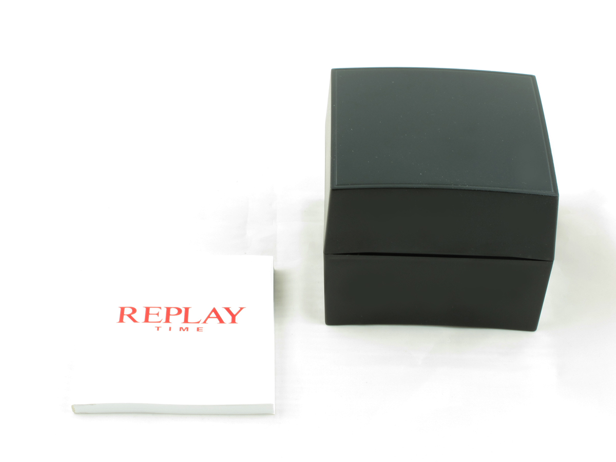 REPLAY Man WatchColor(s): BlackComposition: Stainless steel - rubberBrand logo Quartz chronograph5ATM Water resistantPackaging: Case User GuideSize: Cadran: 5*3 cmBracelet: 35 cm